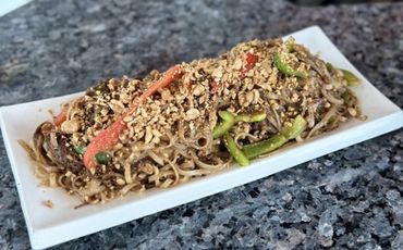 Pad Thai Rice Noodle, Onion, Mixed Pepper, Peanuts in Pad Thai Sauce and Choice of Chicken, Beef or Mixed Vegetables 20.95 🔷🔳